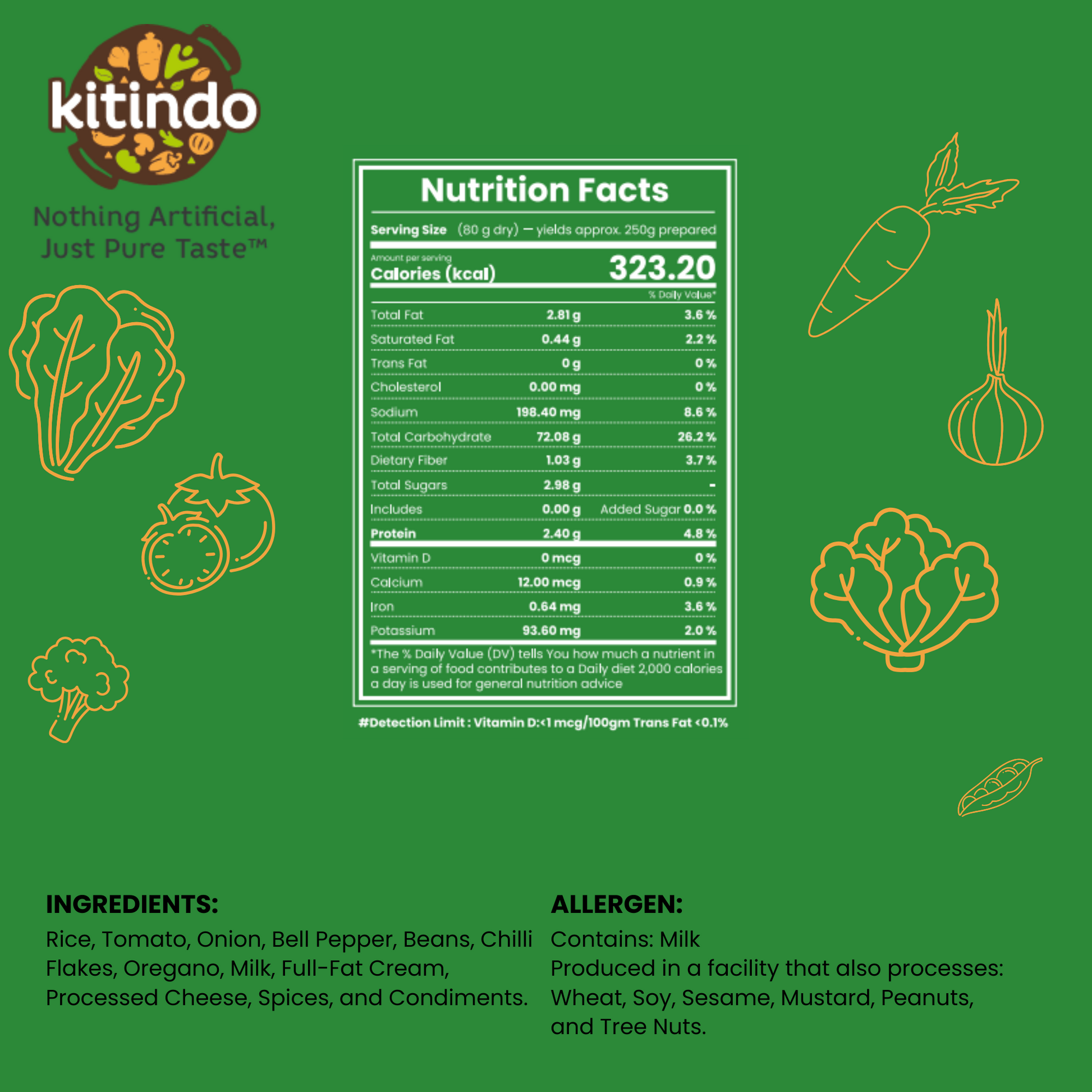 Tomatoes and bell peppers provide lycopene and vitamin C, offering protection against oxidative stress and promoting heart health. The slow-cooked rice supplies complex carbohydrates for sustained energy levels, while cumin and garlic aid gut health and reduce inflammation. This dish is both light yet nourishing, supporting immunity and overall digestive wellness.