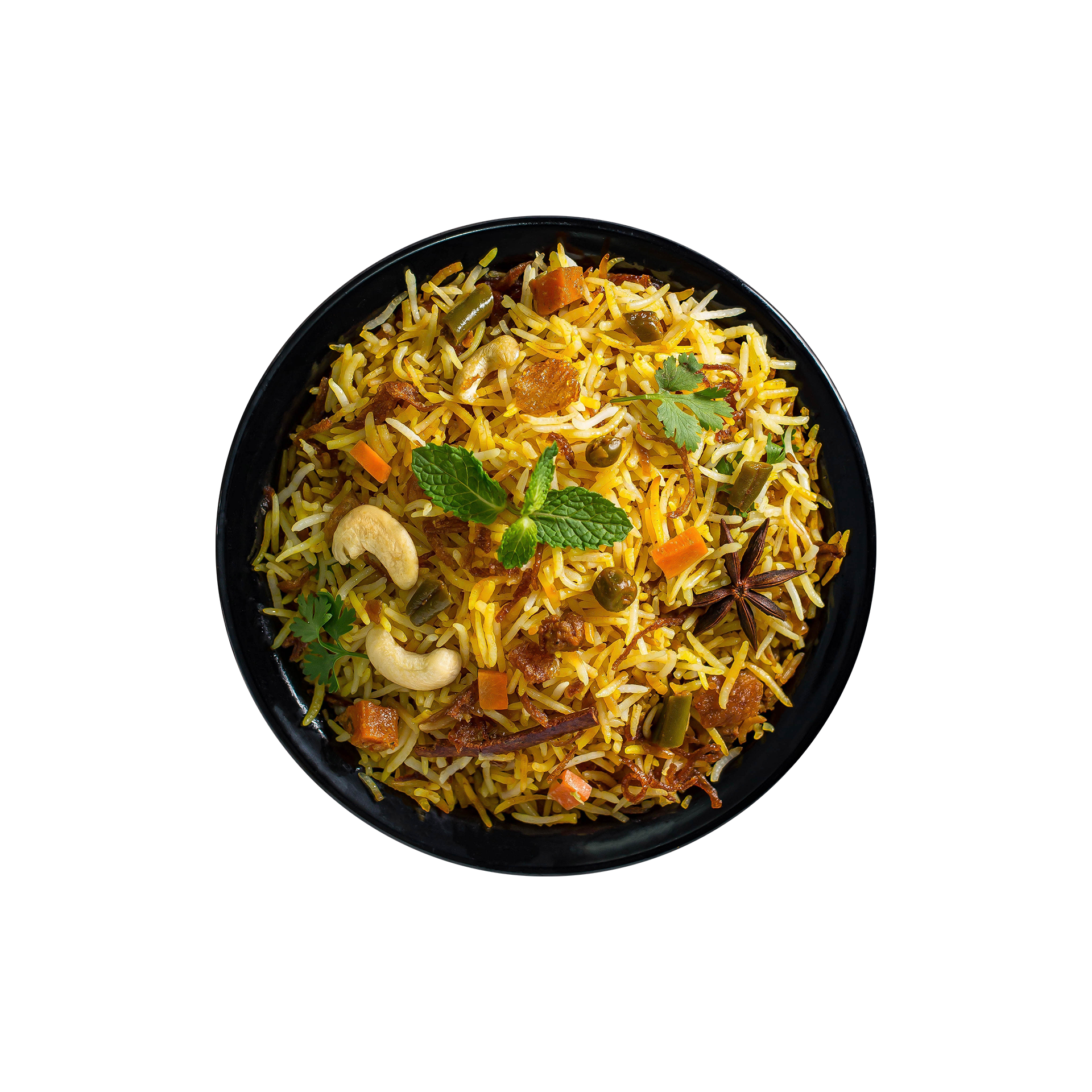 Every grain of rice in this biryani carries the rich fragrance of hand-ground spices, gently lifted by the warmth of nutmeg and cinnamon. Slow-cooked vegetables retain their texture, absorbing the ghee-laced aromatics that make this dish a perfect balance of lightness and indulgence. Delicate yet full-bodied, this biryani is as much about the art of layering as it is about taste.