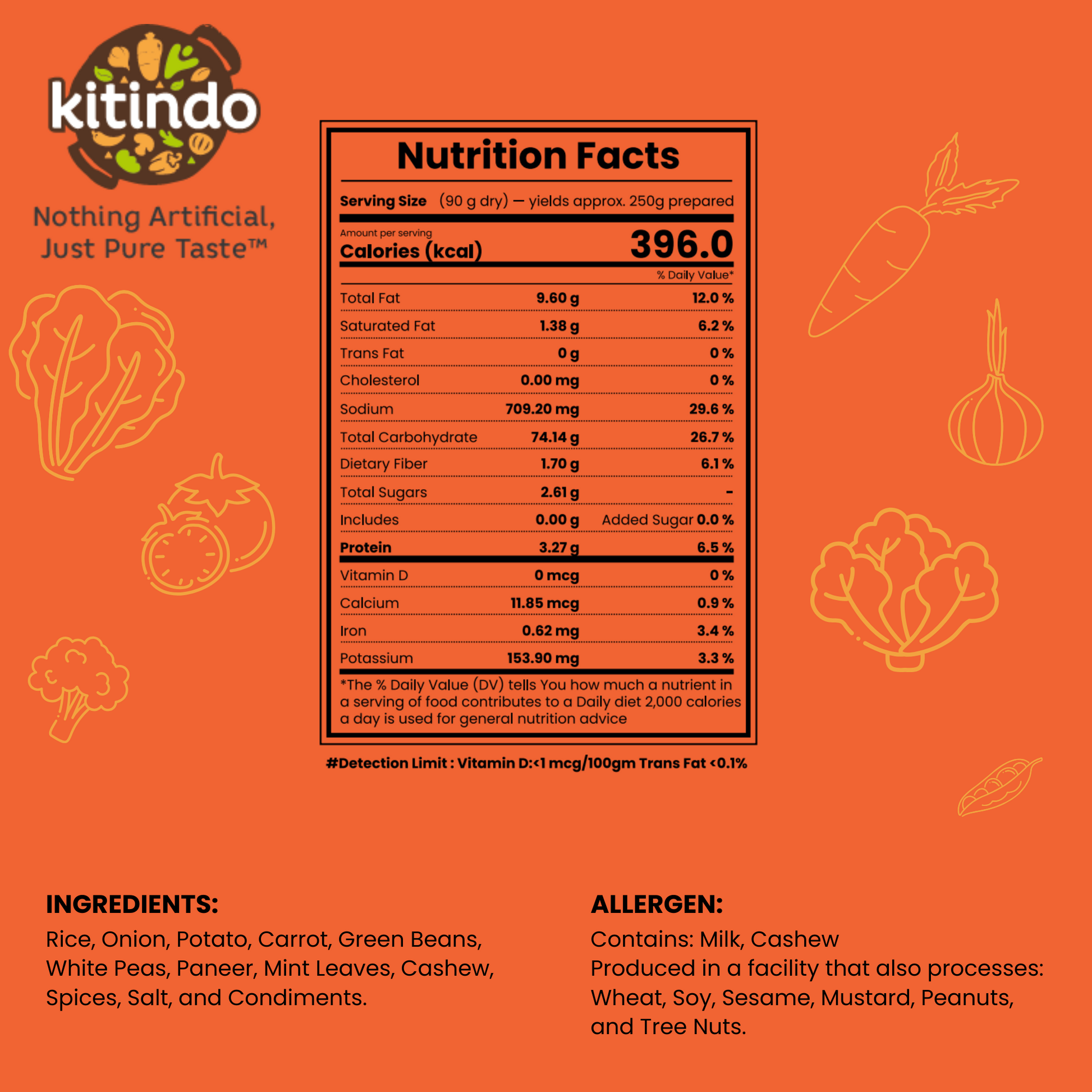 The slow dum-cooked process preserves the essential minerals and antioxidants from the whole spices, enhancing digestion and reducing bloating. Basmati rice is a complex carbohydrate that provides steady energy release, preventing blood sugar spikes and keeping you full for longer. Ghee in this dish lubricates the gut, enhances the absorption of nutrients, and strengthens the immune system, making this biryani both nourishing and satisfying.